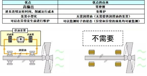 滚动轴承需要平稳的旋转,用润滑油减少摩擦损失,而磁悬浮轴承是非接触的轴承,因此不需要润滑油。