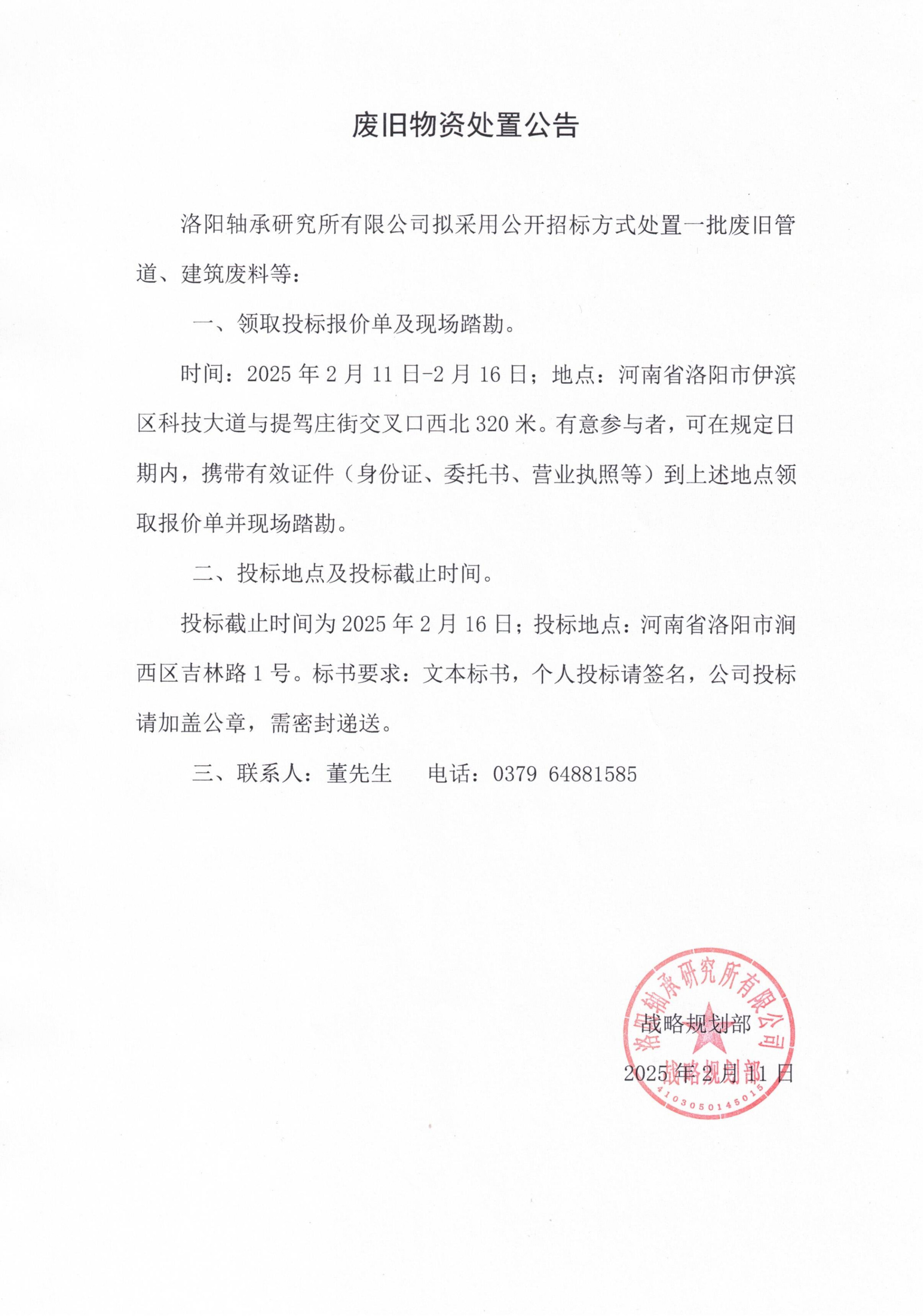 文章出处:招标采购信息 网责任编辑: 洛阳轴承 阅读量: 发表时间:2025-02-11 17:36:56