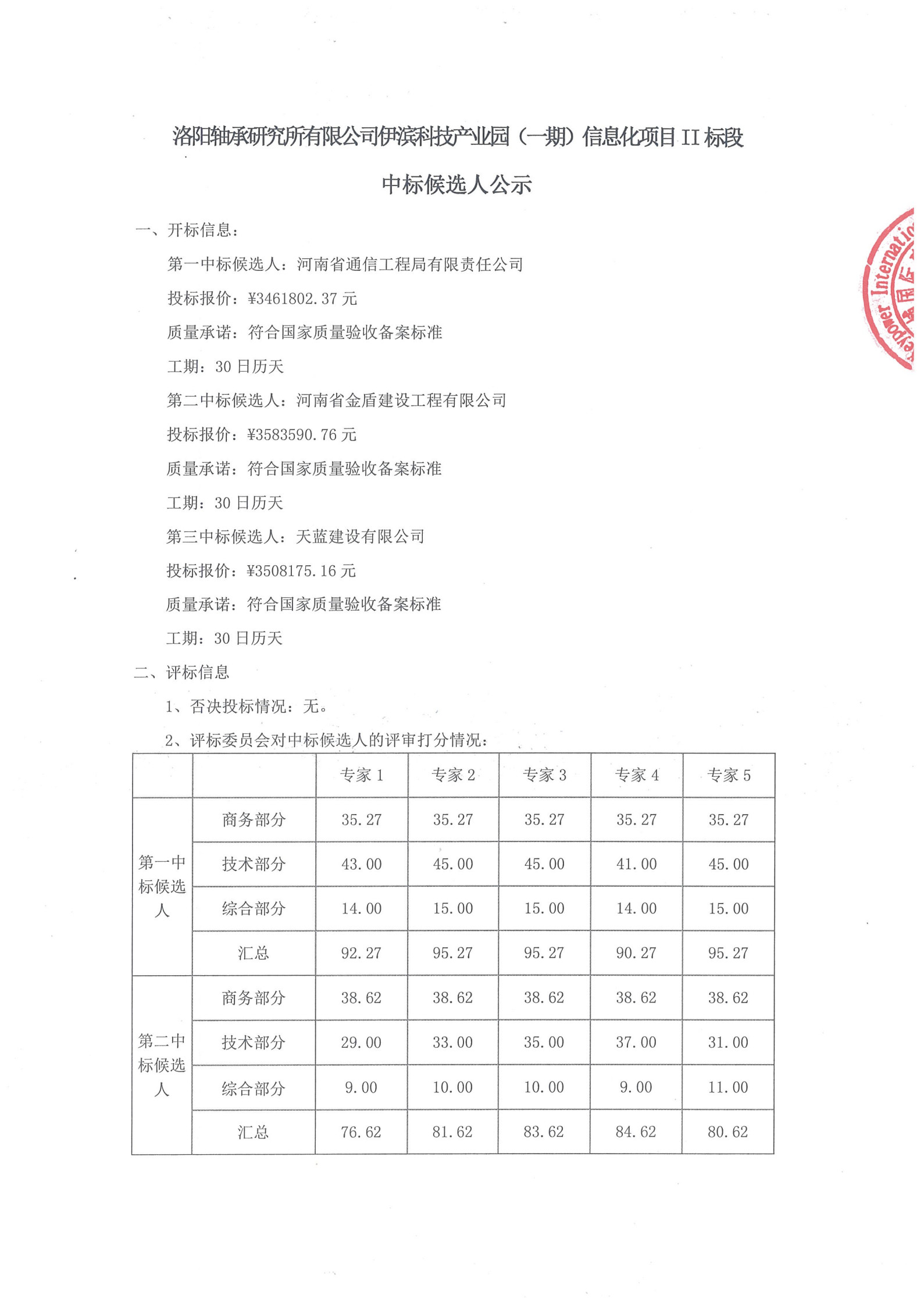 洛阳leyu体育官网 有限公司伊滨区试验中心厂房试验设备电缆采购项目中标候选人公示