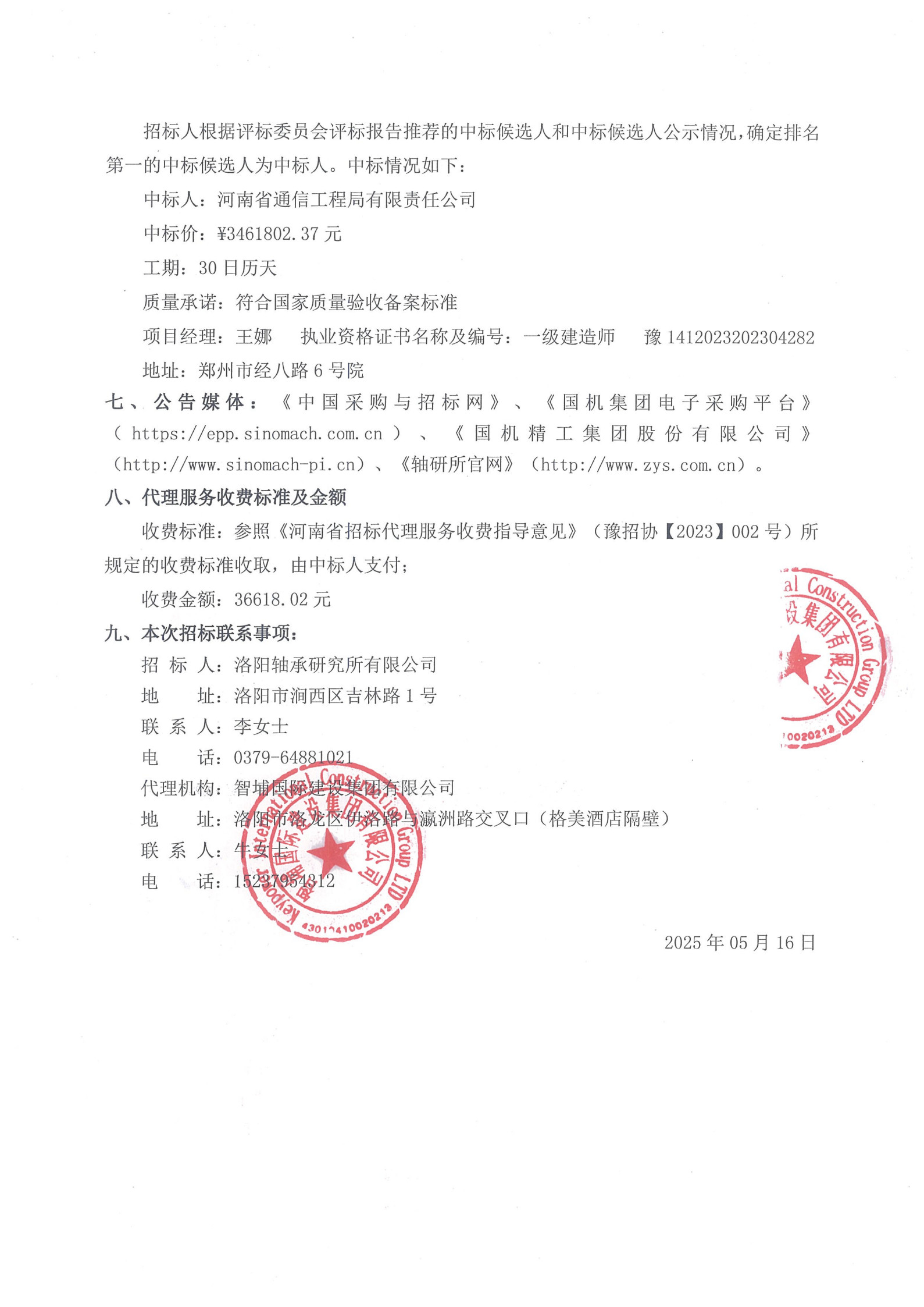 文章出处:招标采购信息 网责任编辑: 洛阳轴承 阅读量: 发表时间:2025-05-16 17:50:44