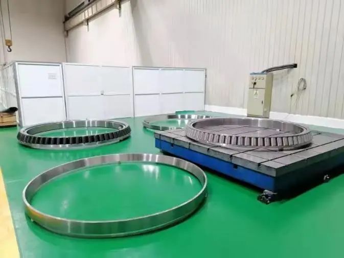 7MW级海上风电主轴轴承作为风力发电机的零部件,载荷复杂多变,轴承可靠性及精度要求高,设计寿命需达到25年以上,技术难度大。为满足严苛的工况要求,轴研所技术团队通过科学选用材料、仿真设计、优化制造工艺、保持架的特殊设计与加工等,攻克了多个技术难点,成功研制出7MW海上风电主轴轴承。其采用了两套圆锥滚子轴承布置形式,外径尺寸达3100mm。