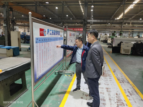 高飞现场考察了主轴制造部,视察了产品零件加工现场,与技术、工艺和操作人员进行深入交流,并仔细询问主轴制造部“三原色”班组建设情况。