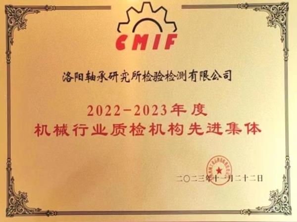 12月4日,全国机械工业质检机构工作会议召开,中国机械工业联合会执行副会长罗俊杰为先进集体颁发荣誉奖牌,洛阳leyu体育官网 检验检测有限公司荣获“2022-2023年度机械行业质检机构先进集体”称号。