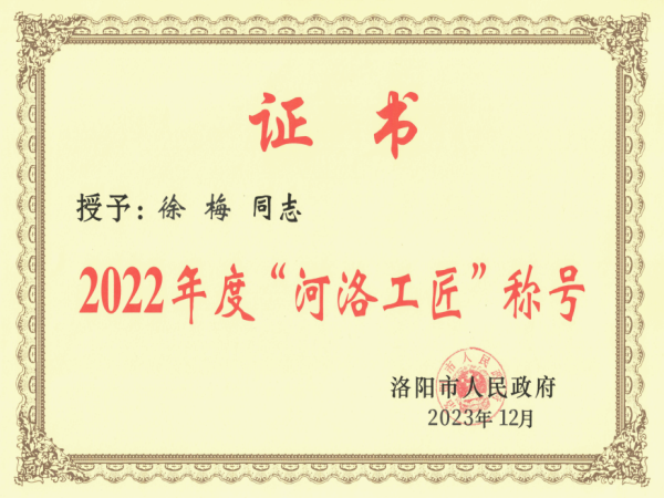 近日,洛阳市政府发布《洛阳市人民政府关于命名2022年度河洛大工匠和河洛工匠的决定》(洛政〔2023〕34号),全市共授予“河洛大工匠”5名,“河洛工匠”60名。公司制造服务事业部特种材料开发部徐梅被命名为“河洛工匠”。