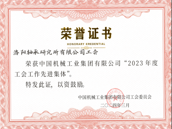 近日,国机集团2023年度工会工作会议隆重召开,会议总结2023年集团工会工作,部署2024年任务,并表彰了集团工会年度先进集体和个人,轴研所工会荣获国机集团“2023年度工会工作先进集体”称号。